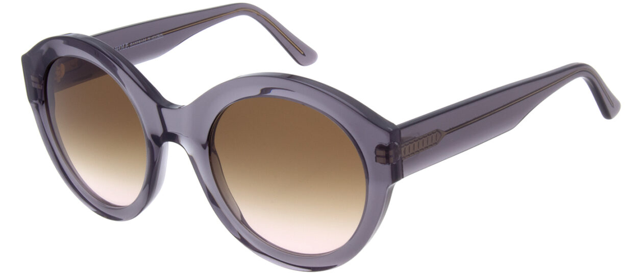 BUTTERCUP is an oversized sunglass with round lenses and classic silhouette. Color options range from timeless orange tones to transparent amber yellow with a matte finish.