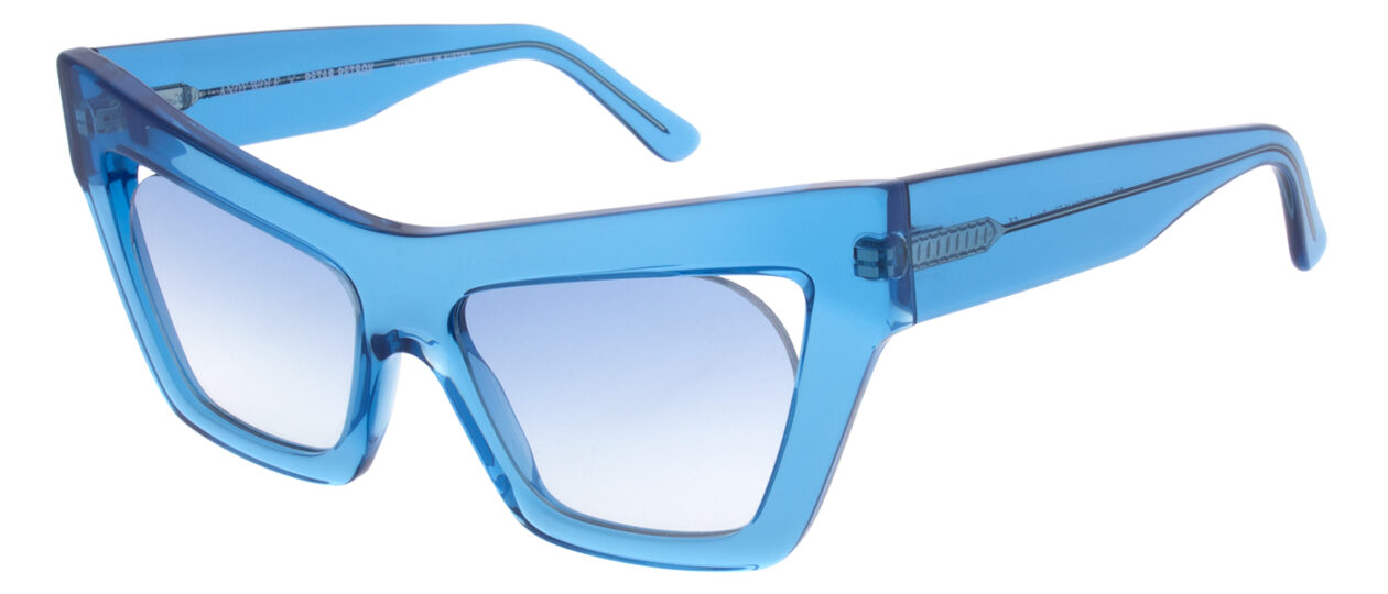 An oversized cate eye acetate sunglasses with a cut-out between the lens and frame - created with Petar Petrov.