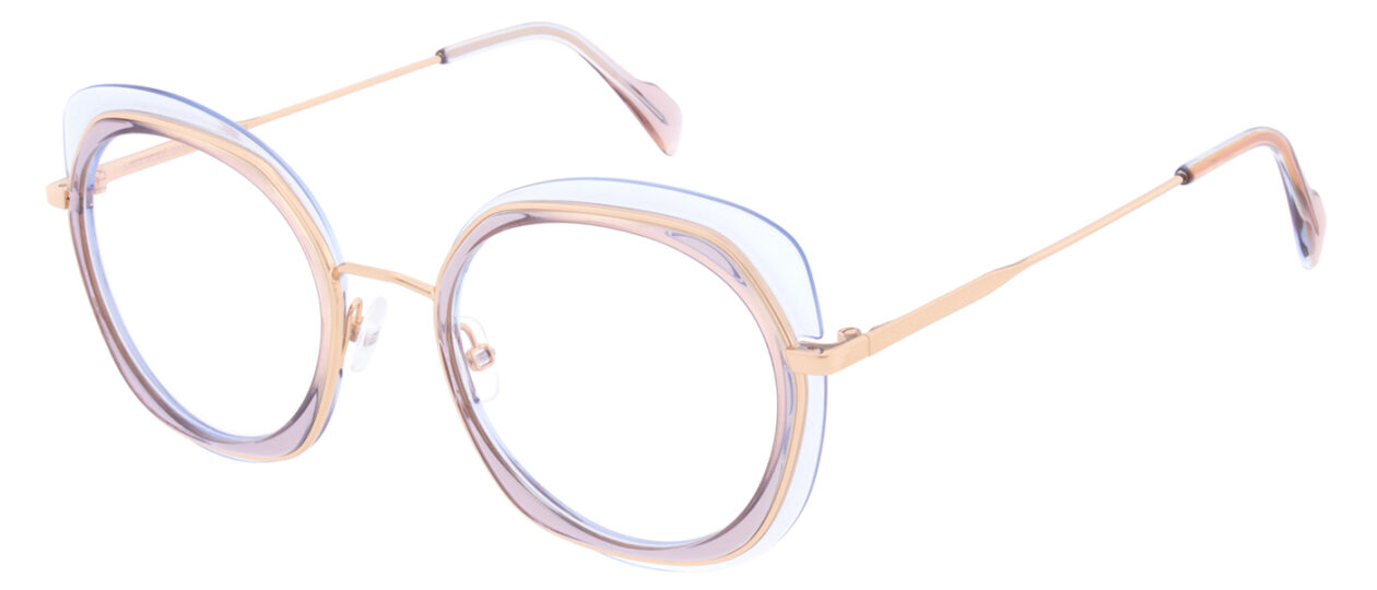 The medium-sized 4837 is a feminine combination frame with a unique geometry. It combines three shapes in one design – a soft cat-eye, a geometric hexagon and a classic panto – and strikingly layered materials in different colours and patterns.