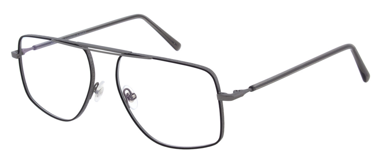 The wide 4839 is a masculine aviator frame made of metal with a continuous upper bar and patterned profile wire. The design combines a confident shape with lightness and high wearing comfort.
