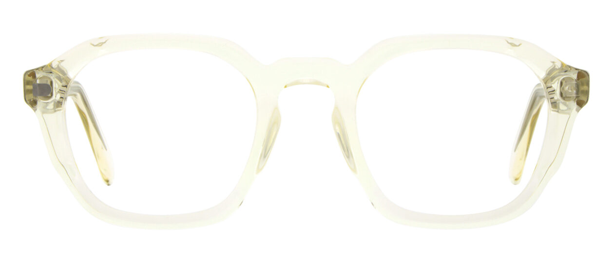 The medium-sized AWE08 is a geometric acetate frame with a keyhole bridge and distinctive facets. Delicate pins and an exclusive temple insert add precise accents.