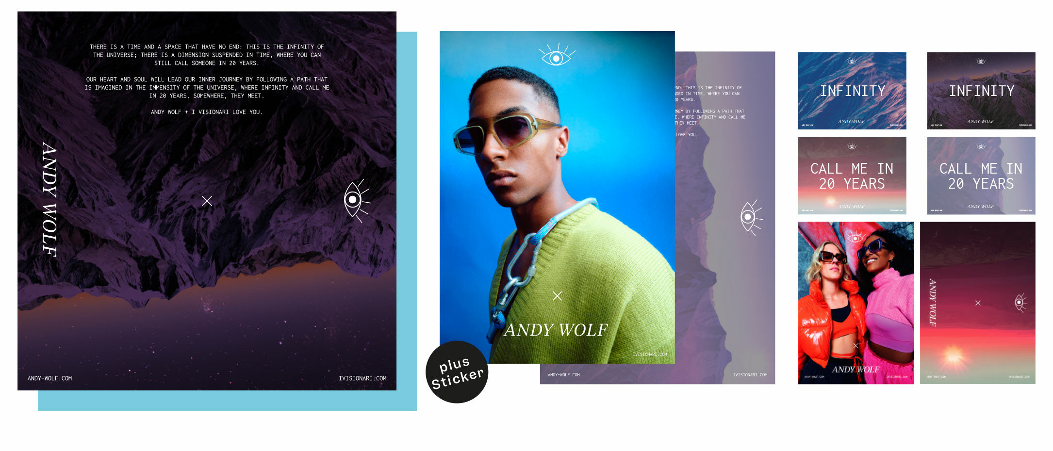 Le set ANDY WOLF x I Visionari se compose de 2 lunettes de soleil en 2 couleurs chacune. Chaque set est accompagné d'un riche package publicitaire et de PLV.